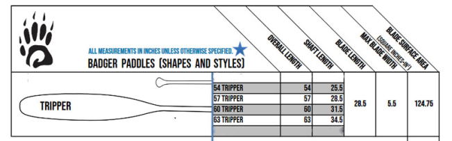 The Badger Paddles Tripper Oiled canoe paddle is what most would describe as a traditionally shaped Ottertail (deep water) paddle. This paddle offers a smooth and quiet paddle stroke with a blade that offers a substantial surface area, this makes the Tripper ideal for paddling lakes, broads and large bodies of water.