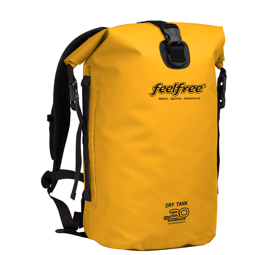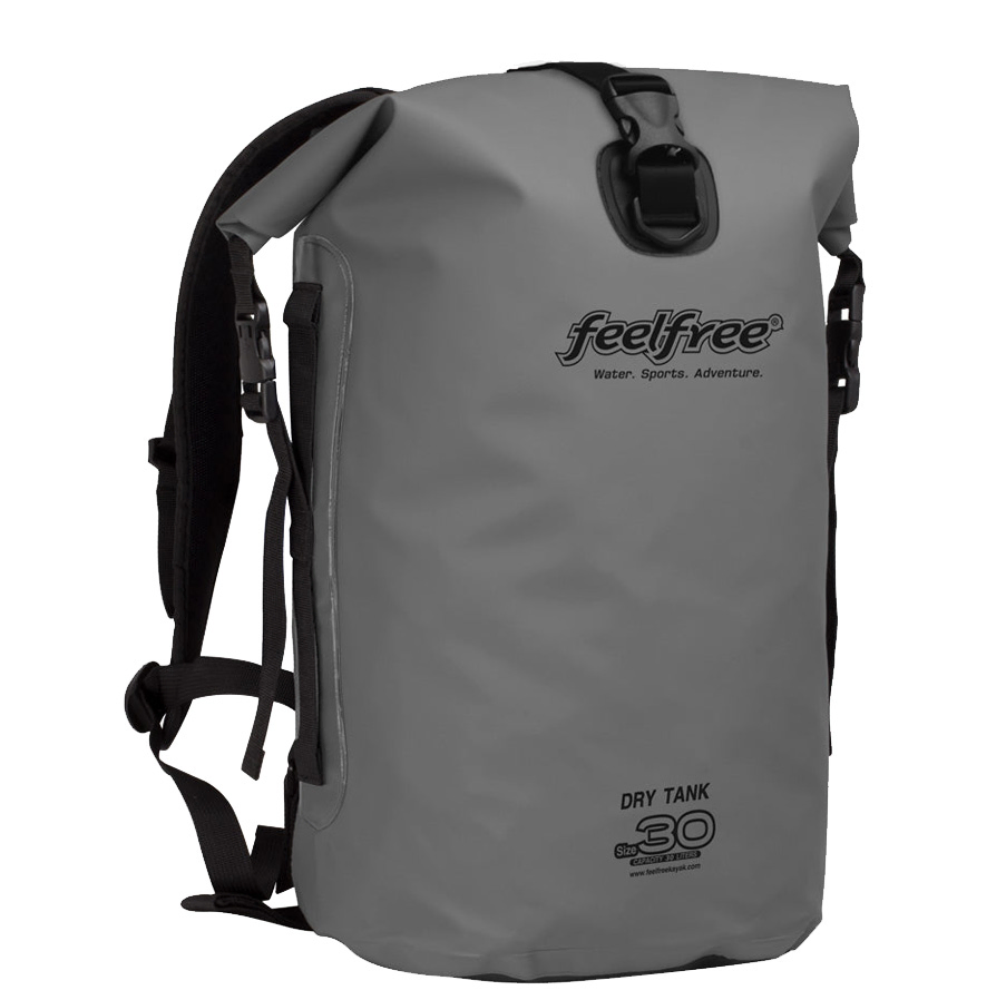 The Feelfree Dry Tank 30 Litre is a midsized backpack style dry bag with padded shoulder straps making it ideal as a main dry bag when out on the water or as a wet kit bag after your paddle.