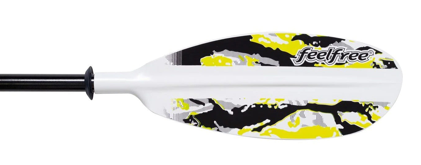 Designed with a lightweight fibreglass 2 part shaft which gives a much warmer feeling in hand than any cheaper alloy shafted paddle, along with tough asymmetrical polypropylene blades which ensure for a durable paddle. Fitted with a push button style 2-piece shaft the Feelfree Camo Angler paddle can be split down for easier storage, transportation or even used as a spare paddle.