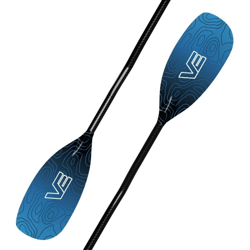 The VE Creeker Glass paddles come with 3 shaft options, a straight glass shaft, carbon straight shaft or carbon bent shaft. The straight glass shaft offers a more flexible paddle shaft, however if you need a stiffer paddle offering more performance then then Carbon Shaft is the one to look at - this also offers a lighter weight overall paddle. The carbon bent shaft option is a stiffer shaft designed to align your wrists elbow and shoulders reducing strain and fatigue, which really helps paddlers who suffer pain after paddling.