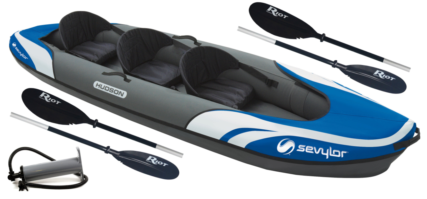 The Sevylor Hudson Inflatable Kayak is a brilliant comfortable boat that not only offers a cheap way to get on the water but is convenient to pack down and transport in the back of your vehicle. Ideal for families thanks to the Hudson having 3 seats and the ability to take 3 paddlers (2 Adults & 1 Child). All the seats are removable which means you can configure this inflatable kayak for solo paddling from the mid seat or for taller paddlers just remove the middle seat and enjoy the extra leg room and storage space.