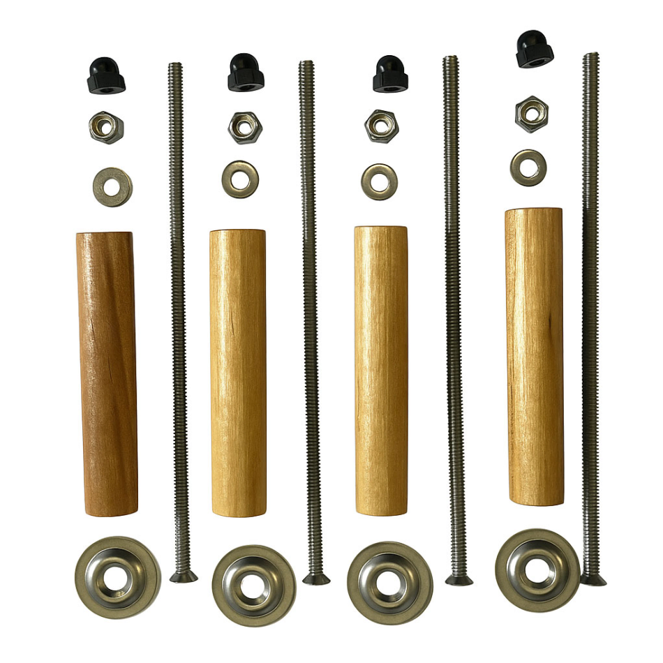 The Old Town Canoes Seat Hanging Kit is a set of 4 wooden droppers along with the bolts, nuts, washers and metal gunwale washers. Prefect for upgrading worn or broken parts which happens in old canoes.Ideal for hanging an Old Town Canoes wooden webbed seat in your canoe.