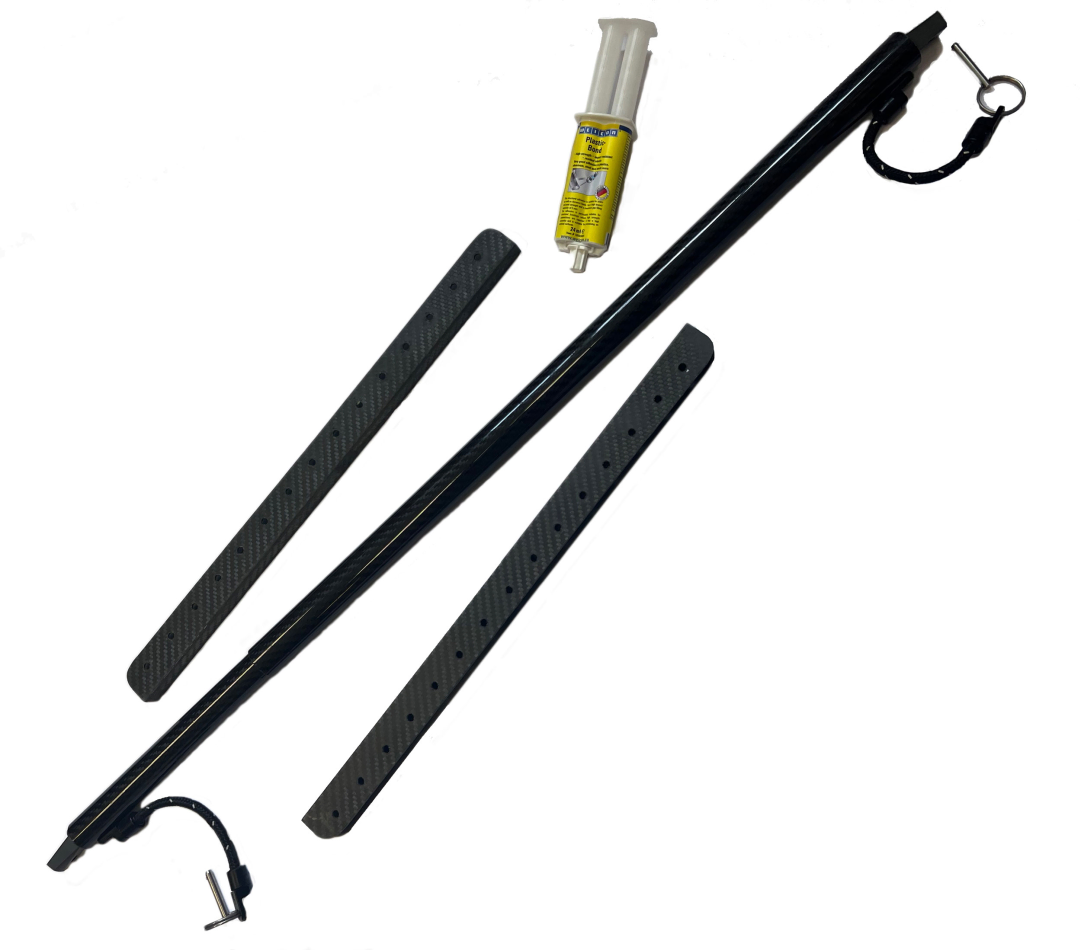 The Swift Canoes Adjustable Carbon Footbar Kit is a lightweight telescopic support bar constructed from carbon fibre. Supplied with every thing you need including the runners and epoxy to fit it into most lightweight laminate open canoes.