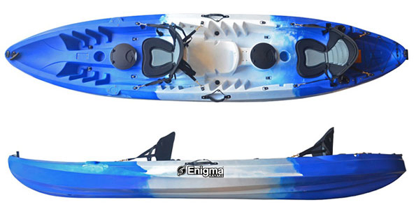 We offer the Enigma Kayaks Flow Duo tandem sit on in an affordable cheap deluxe package which includes 2 x Enigma Kayaks Deluxe Seats, 2 x 2 Part Alloy Paddles & 1 x Enigma Kayaks Flow Duo Tandem Kayak