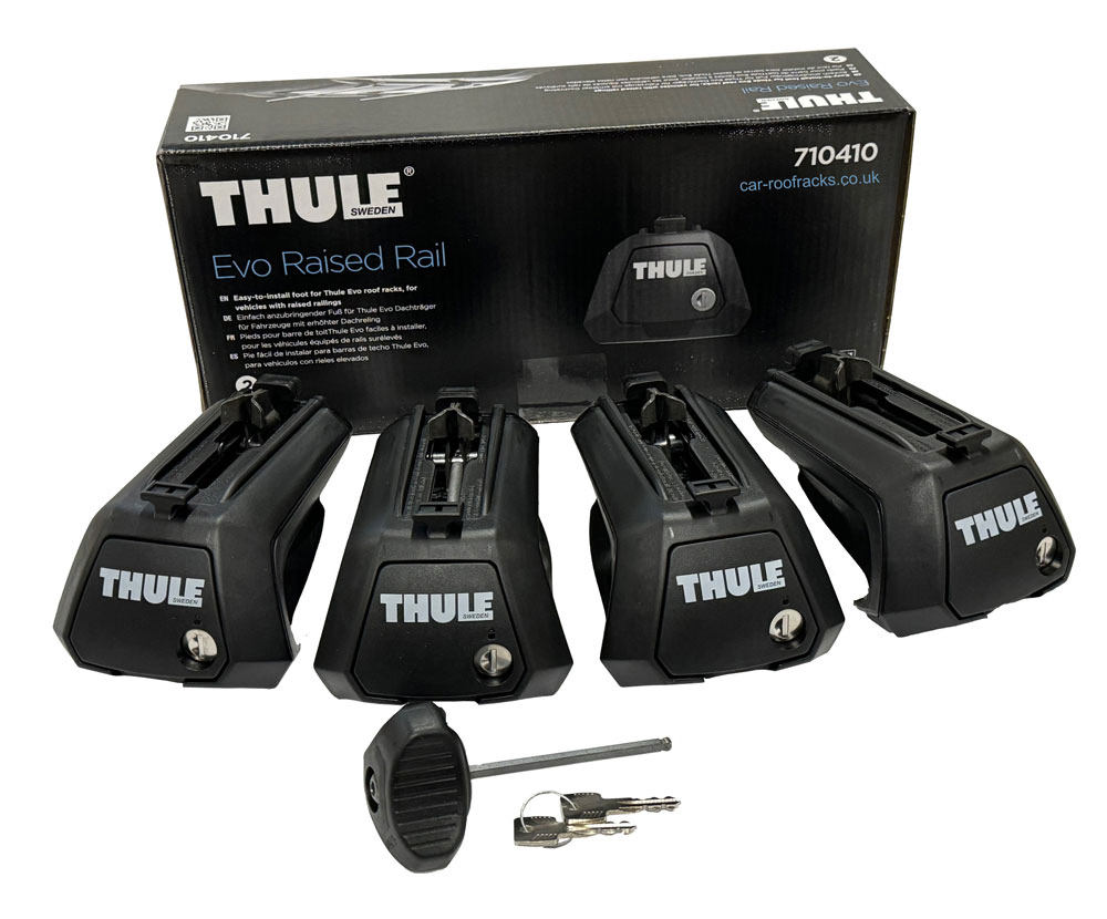 The Thule Evo Raised Rail - 7104 Foot Pack fits Thule Evo roof bars onto vehicles with a raised roof rail. Fitting most raised rail vehicles and securing via the included torque limited hex-key/ allen key, which secures at the correct level of tension without overtightening.